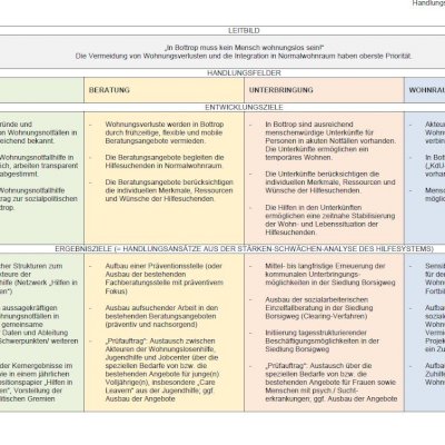 Erstellung eines kreisweiten Konzepts zur Wohnungsnotfallhilfe unter Einbeziehung einer Arbeitsgruppe aus Kreisverwaltung, kommunalen Vertreter*innen, sozialen Trägern und Wohnungswirtschaft