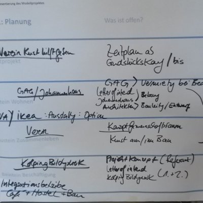 Organisation und Moderation eines Beteiligungsprozesses mit Stadtteilakteuren zur Entwicklung von Verstetigungsstrategien für Projekte und Strukturen, Erarbeitung eines Verstetigungskonzeptes